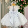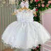 Confeccionado em tecido misto possui forro em poliéster e algodão para não incomodar a criança e proporcionando um caimento incrível e sofisticado, possui gola redonda, comprimento médio, mangas curtas, possui elástico nas costas para melhor ajuste, acabamento com lindo laço na parte posterior do vestido completa o look dos sonhos! BATIZADO,DAMINHA,CASAMENTO,NOIVA,NOIVINHA,DAMA DE HONRA,FLORISTA,DAMA * Medidas podem variar em até 4cm. * Caso queira o vestido mais armado, recomendamos o uso do saiote ou anágua de armação, disponível no nosso site na categoria acessórios. * Tiara vendida separadamente, disponível em nosso site na categoria acessórios. * Calçados vendido separadamente, disponível em nosso site na categoria calçados. * LEMBRANDO QUE PODERA HAVER VARIAÇÃO DE TONALIDADE DO PRODUTO DEPENDENDO DA TELA DO SEU DISPOSITIVO